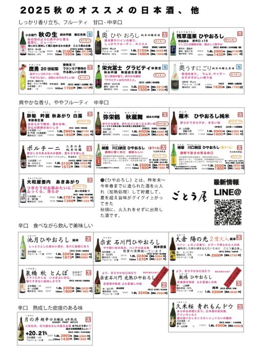 日曜日は秋のお酒の会です